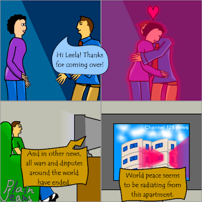 Yep, plain jeans is back, for now at least. I seem to keep taking breaks. I can't believe it's been just slightly over 6 months since the last strip. Time goes fast when you're busy.
